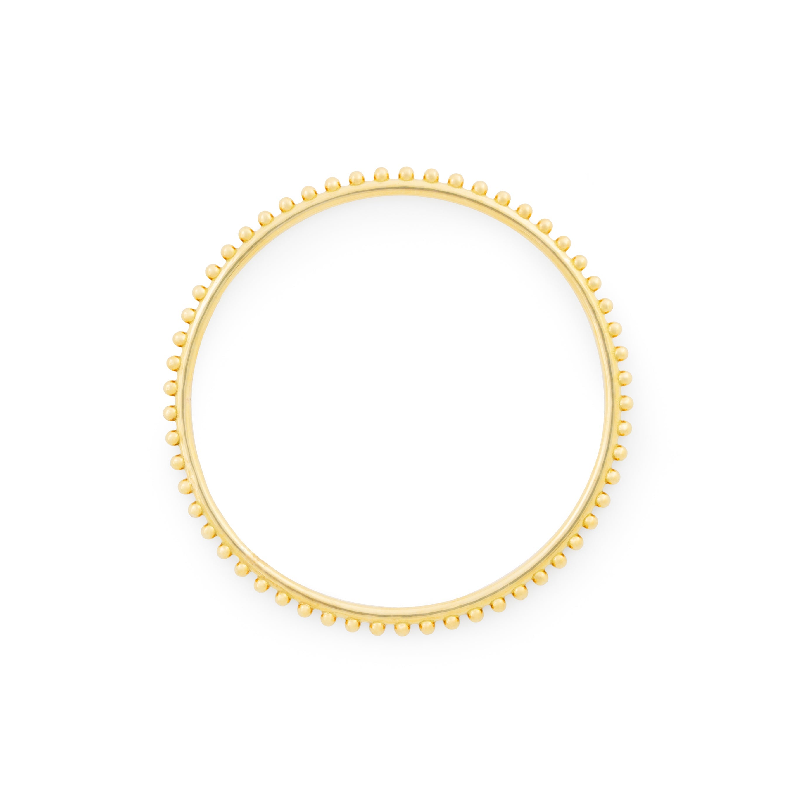 The Helio Band, inspired by the sun’s rays, features a delicate beaded design that encircles the wrist. Crafted in solid gold, these bangles are designed to protect the energy points of the wrist. Available in three sizes: Small is 60MM, Medium is 62MM, Large is 64MM. Offered in either 14k or 18k solid gold. Please note that all of our fine jewelry pieces are made to order. Kindly allow 4-12 weeks for your item to be made and delivered.