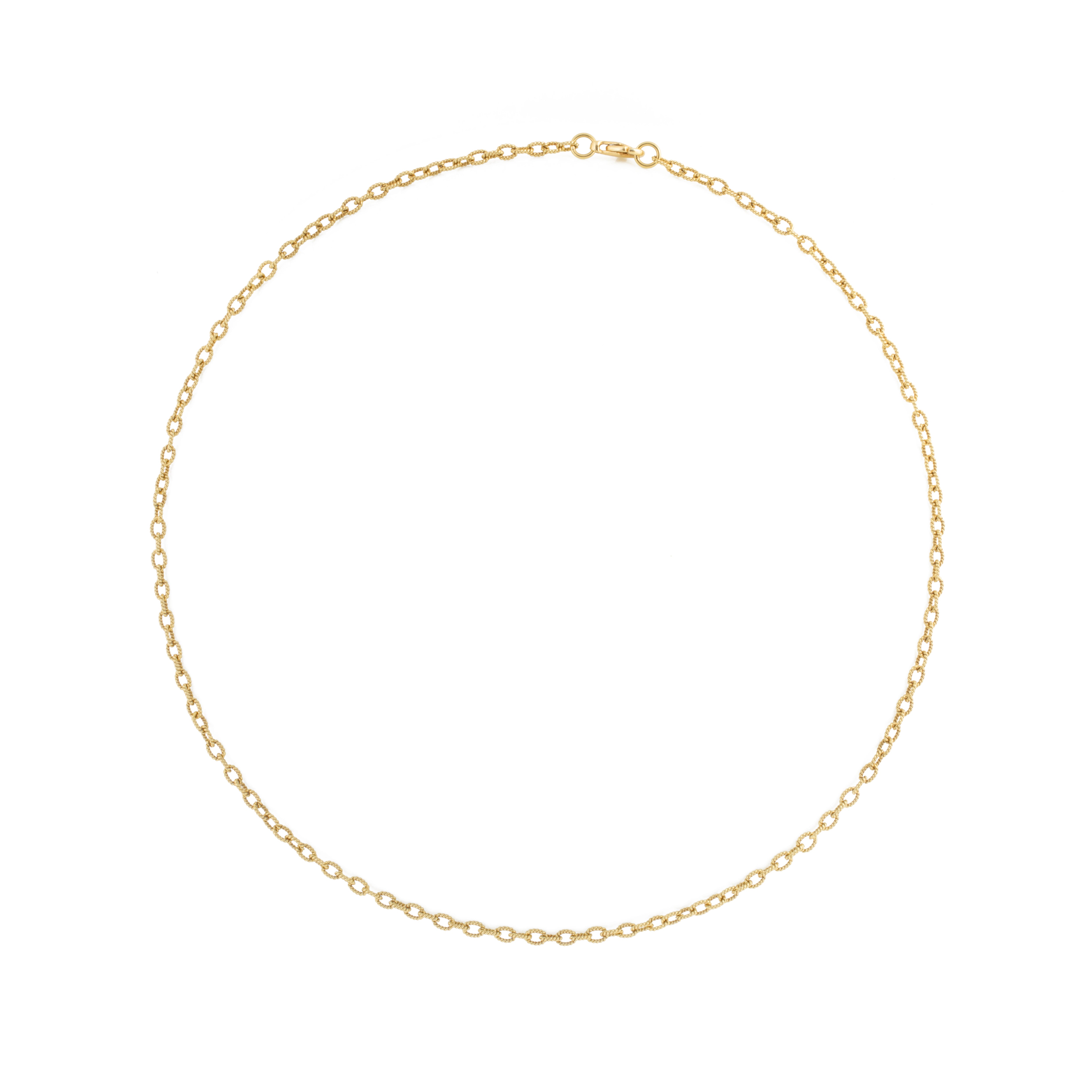 A handmade, elevated twisted link chain crafted in solid 18k gold. Measuring 3.2mm and also available in 4.10mm. This decorative chain features interlocking woven rope links and is secured with a rounded lobster clasp closure, offering both elegance and simplicity. Available in 18 and 20 inch.