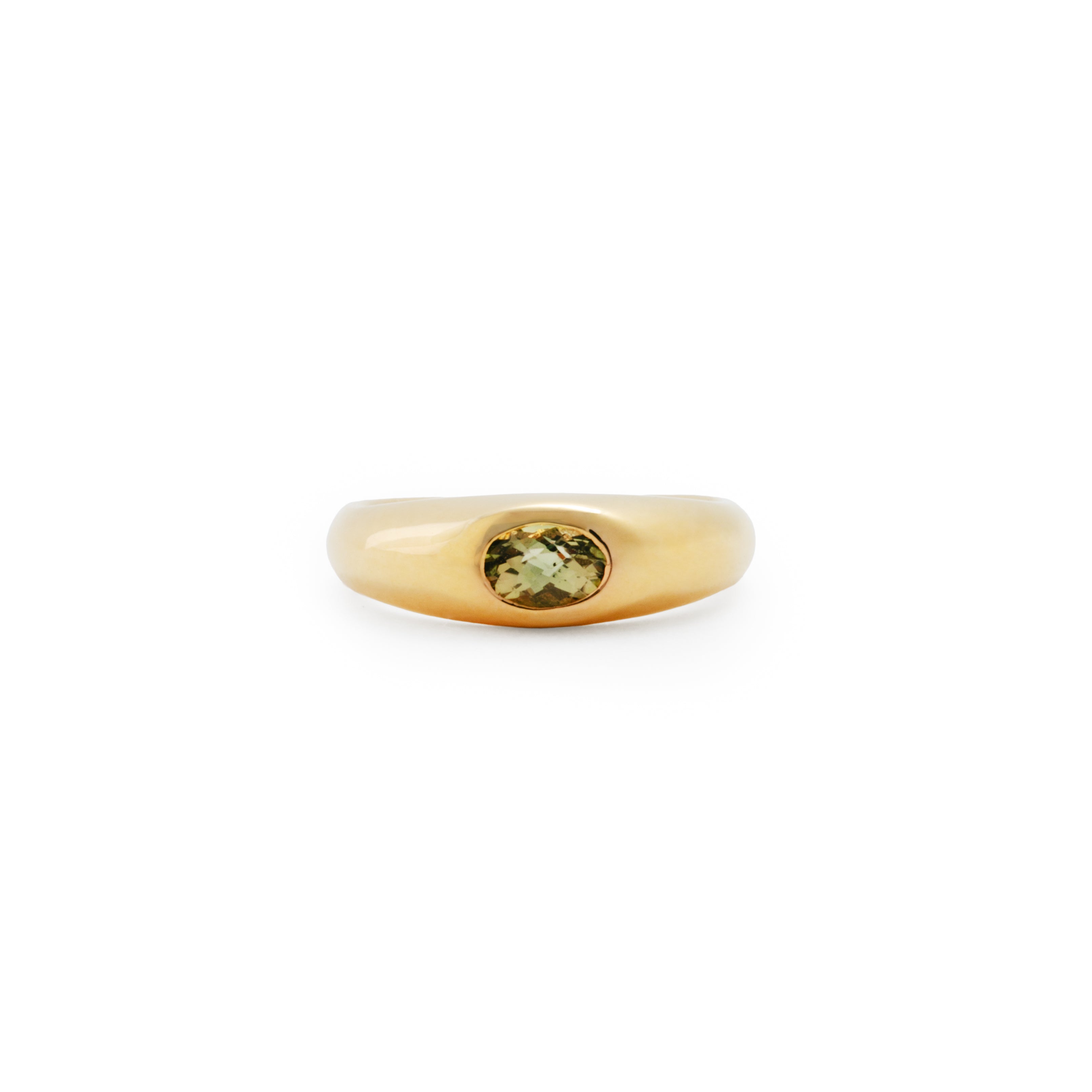 Green Tourmaline has been known to be associated with Virgo and Capricorn. This nurturing stone is a beneficial gem for self healing and issues of the heart. It is known to invoke feelingsof stability and wholeness. This 0.55 carat stone is set in 18k solid gold. The orb ring features smooth rounded lines and contours that highlight the natural beauty of the stone. Ready to ship in size 6. Resizing options available upon request. If resized all sales final and please allow an extra 4 weeks.
